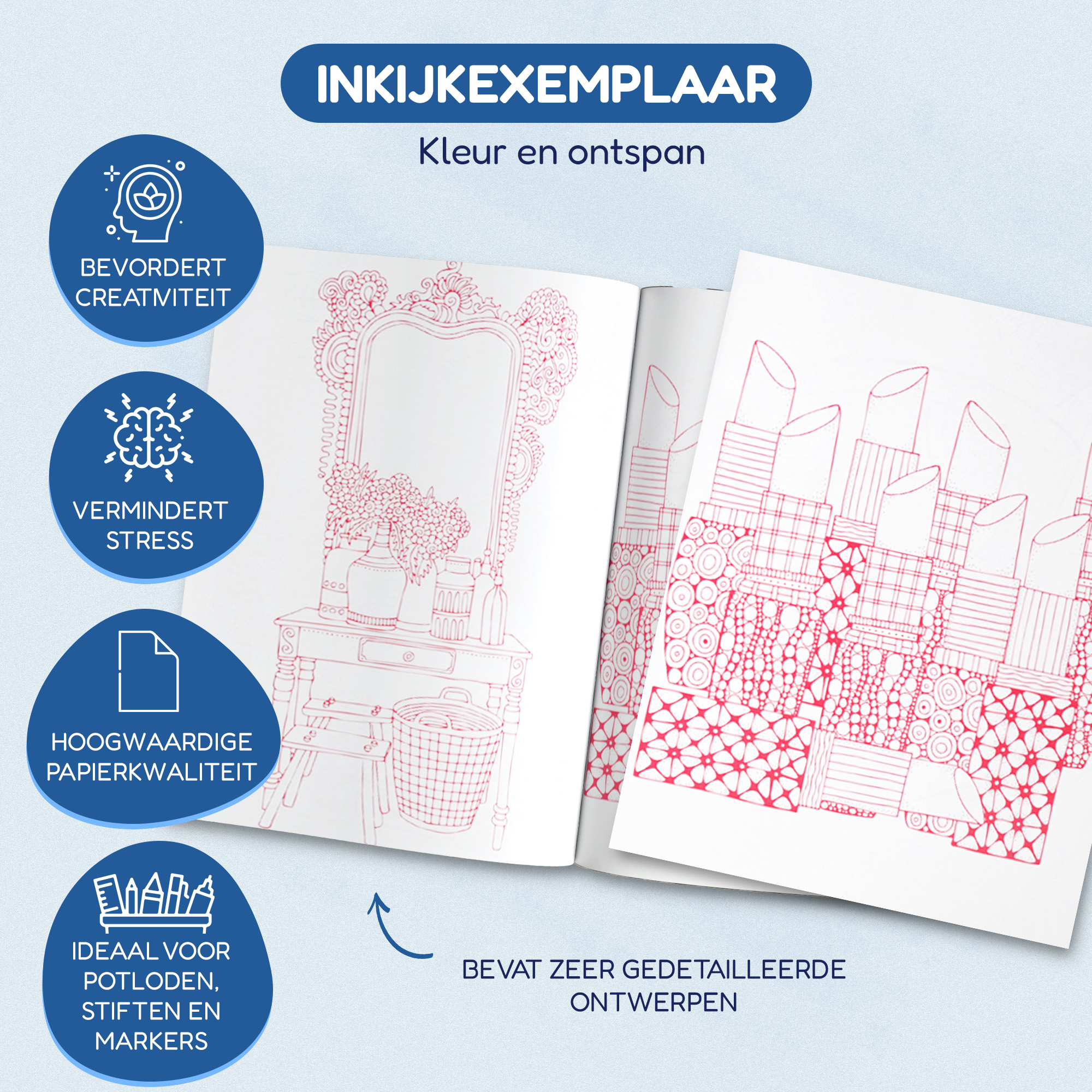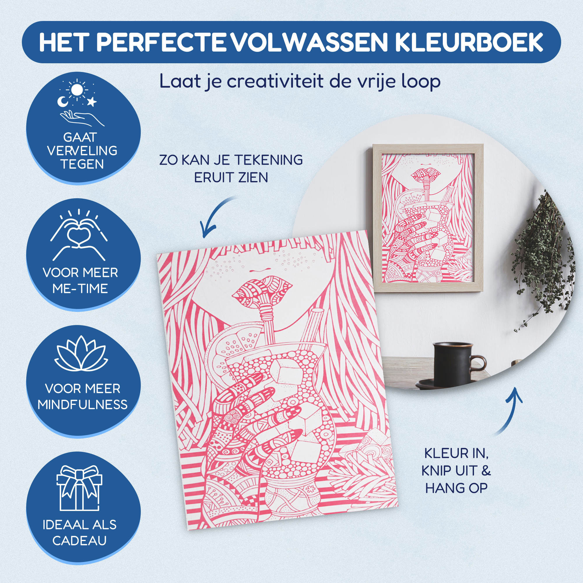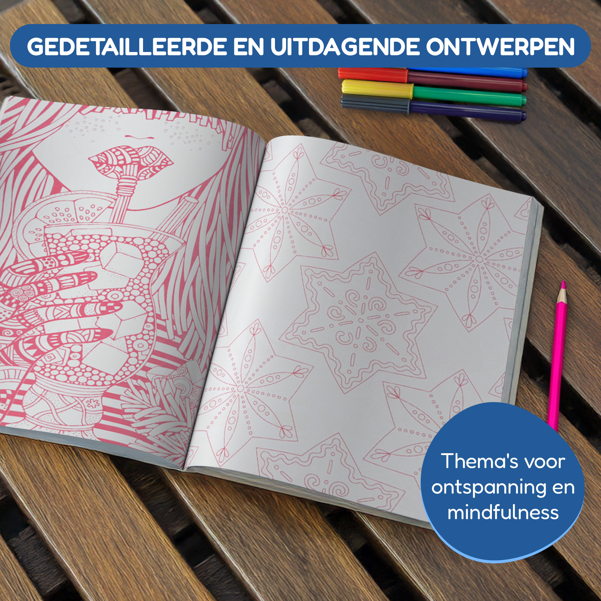 Laat de charme van roze je verbeelding inspireren en maak van elke pagina een kunstwerk vol sereniteit en elegantie. Bestel nu het ‘Eén Kleur in Eén Kleurboek Roze’ en ontdek de rust en vreugde van kleuren in één kleur!